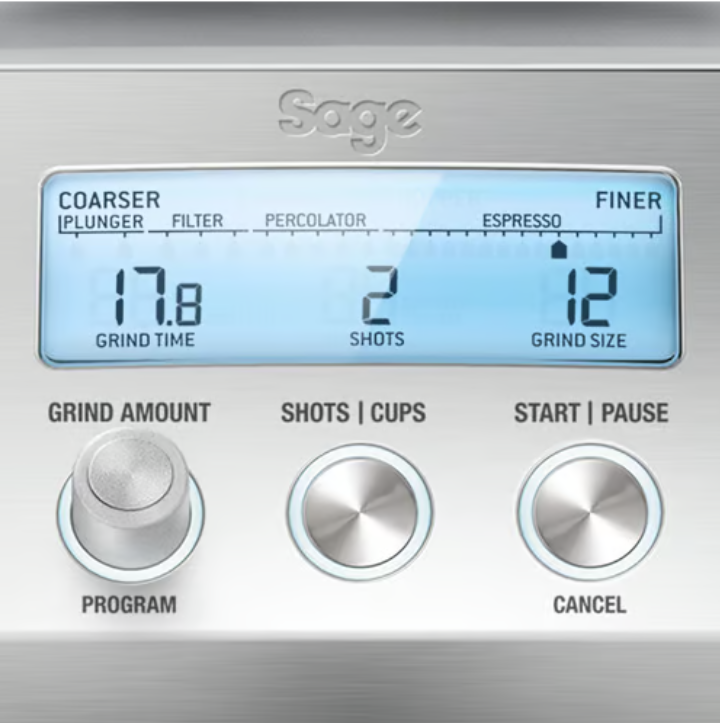 En plus, le Smart Grinder dispose d'un écran LCD, d'une trémie amovible de 450 g et de deux supports de mouture pour vous assurer une grande flexibilité.